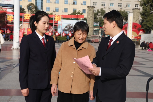 近日,陕西省平利县检察院检察官来到女娲文化广场,开展普法宣传活动。检察官聚焦年末岁尾高发的电信网络诈骗、劳资纠纷等问题,通过案例解读与现场答疑,精准普法,助力群众守好“钱袋子”。本报全媒体记者郝雪 通讯员葛婷婷摄